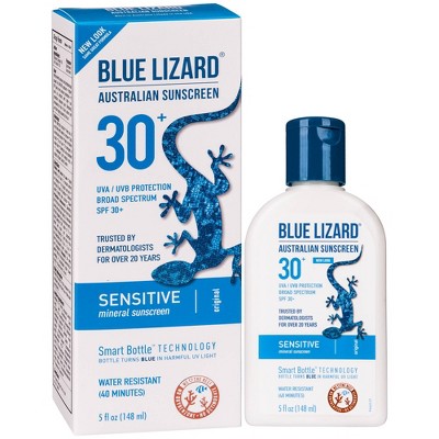 2 Total ratings 2 2952 New. Using only Zinc Oxide and Titanium Dioxide our Baby sunscreen protects you and your little one by acting like thousands of tiny mirrors that reflect UV rays away. Buy BLUE LIZARD Baby Mineral Sunscreen with Zinc Oxide SPF 30 Water Resistant UVAUVB Protection with Smart Bottle Technology - Fragrance Free. The supplement Blue Lizard is made up of naturally occurring minerals. BLUE LIZARD Baby Mineral Sunscreen with Zinc Oxide SPF 30 Water Resistant UVAUVB Protection with Smart Bottle Technology - Fragrance Free 5 oz Tube 2 days Blue Lizard Sport Mineral-Based Sunscreen - No Oxybenzone No Octinoxate - SPF 30 UVAUVB Protection 875 oz. Blue Lizard is an Australian sunscreen formula designed to protect skin from excessive sunburns. Mineral Based SPF 30 Kids Australian Sunscreen. Blue Lizard Australian Sunscreens mineral Baby sunscreen contains no chemical sunscreen ingredients no parabens and no fragrances. Our collection of sunscreen lotions.