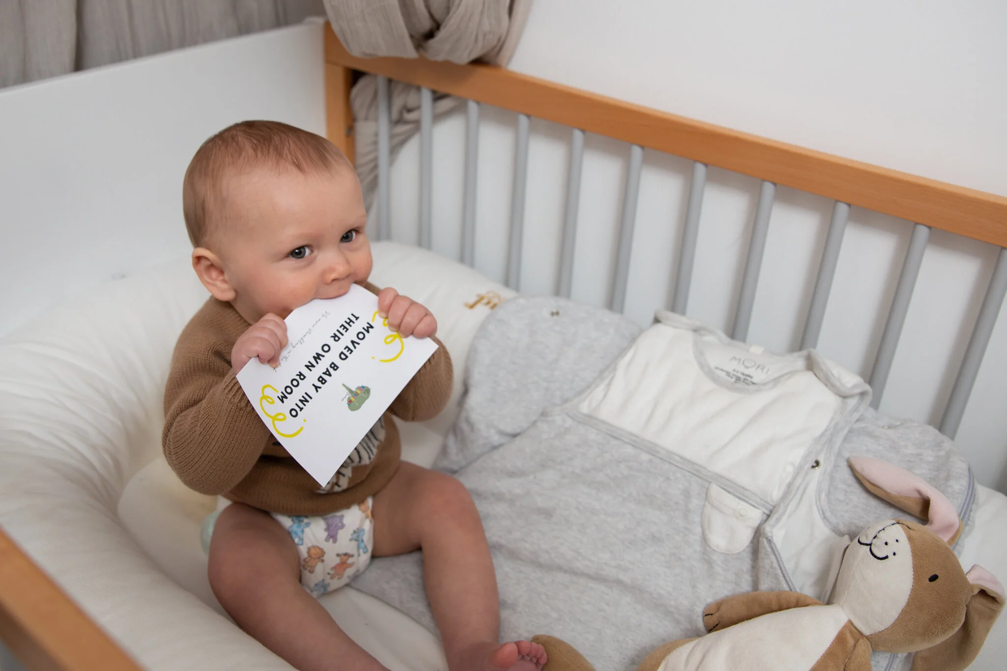 If your baby has not outgrown the bassinet move it into their room and have them spend the first 2-3 nights sleeping in their familiar bassinet in a new space.