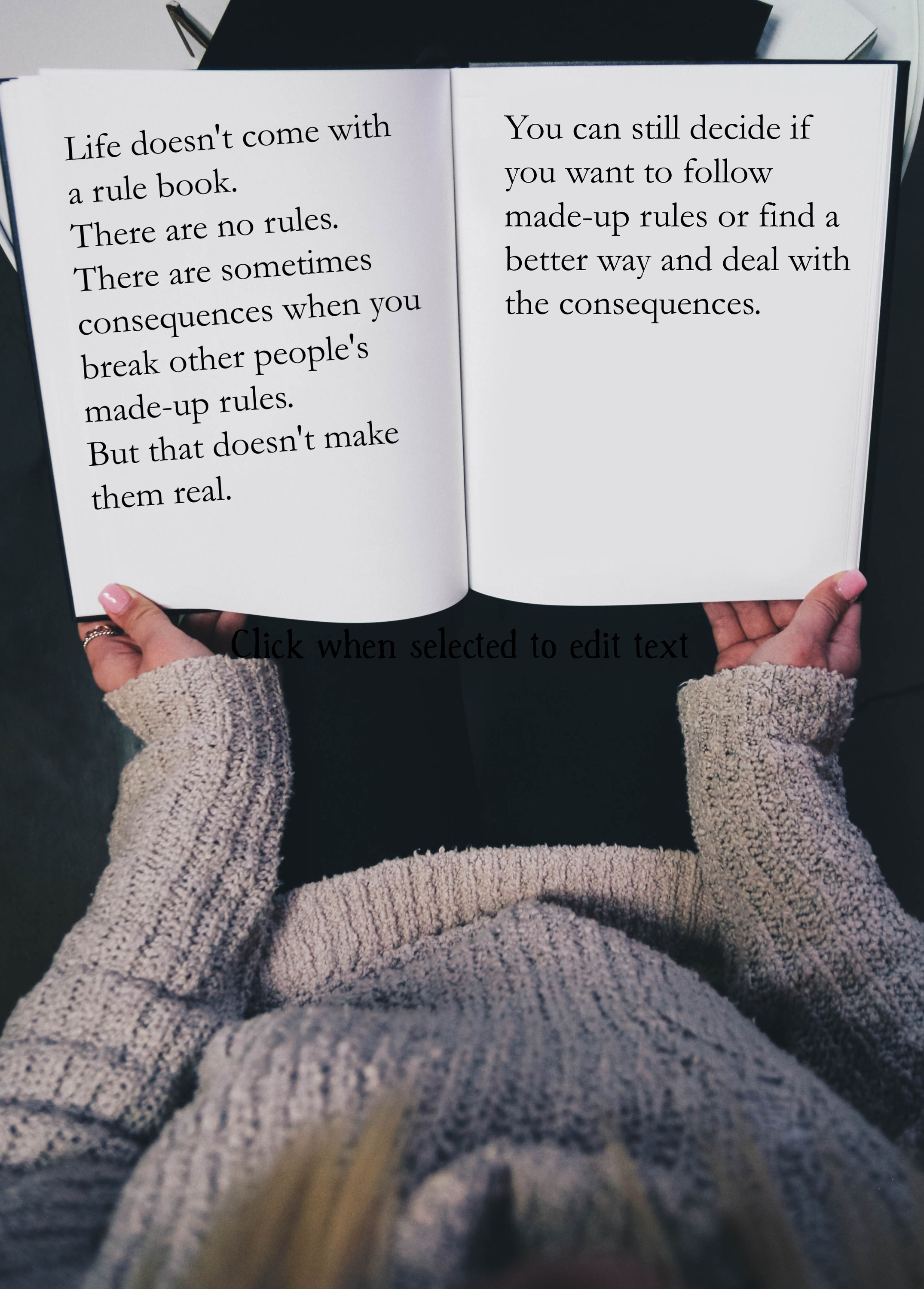 I wrote No Rules in a time where I needed to hear that there were no rules. And I realize now that a lot. Philip doesnt let go his eyes glinting with rage.