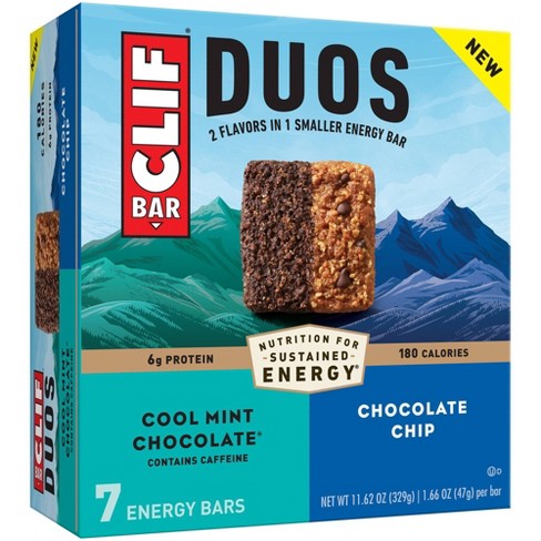 CLIF packed the flavor of a freshly-baked chocolate chip cookie into this classic energy bar. Non-GMO and made with 10 grams of protein this delicious energy bar is made to help energize you before or during activity. Whether youre on a 150-mile ride or exploring a.