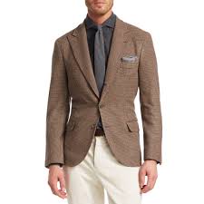 This mens blazer with two buttons is crafted from a precious brown pure cashmere fabric with an Oxford weaving technique. Loro Piana Cashmere Blazer Brown Pointed Collar Flap Pockets Button Closure Unfortunately due to restrictions this item may not be eligible for shipping in all areas. Executive 2-Button Cashmere Wool Fabric Blazer Online Sale Tan khaki Color Beige.