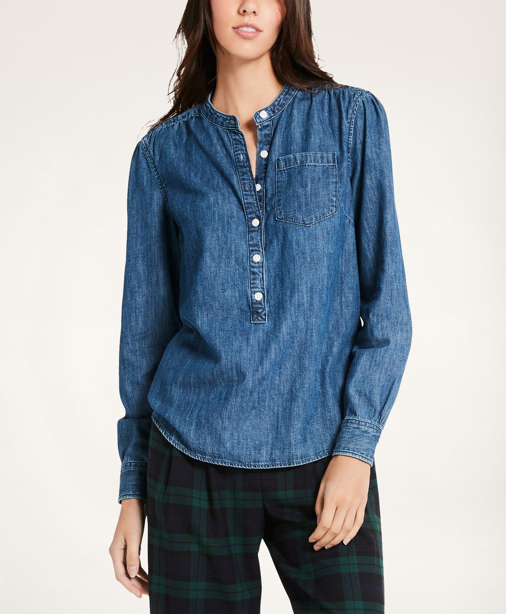 A classic look for casual days this chambray tunic top features an easy three-button placket and a curved high-low hem for added coverage. 40 out of 5 stars. Fast delivery full service customer support. Ann Taylor LOFT Chambray Popover Tunic. Martha Popover Tunic - Blue Chambray. Women Chambray Shirt Long Sleeve Button Down Shirt Long Denim Collared Blouse Jean Tunic with Pockets. EASY CARE 100 French lightweight Linen. Sign in to check out. ADDITION ELLE LOVE AND LEGEND Asymmetrical Peplum Top Plus Size.