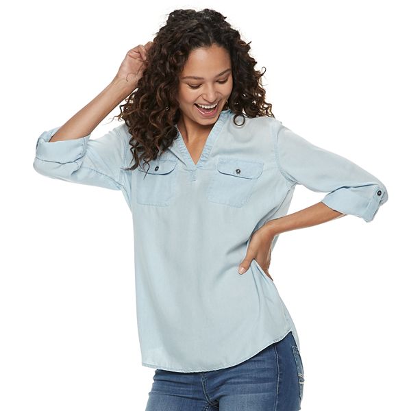 Ann Taylor LOFT Chambray Popover Tunic. 40 out of 5 stars. Jill Denim Blue Tencel Chambray Popover Tunic V Neck Top LT.