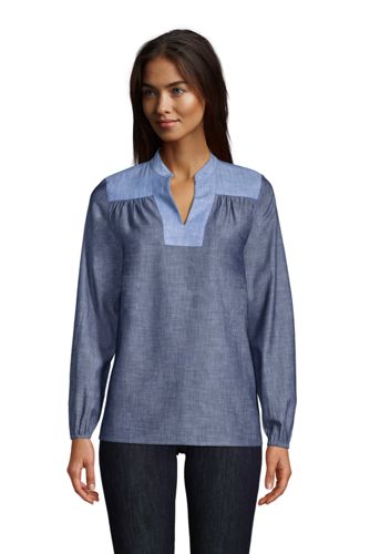 Complete your chic and easygoing closet with this long and flowy tunic cut from soft cotton and lyocell chambray. J Crew Size 0 Linen Blend Blue Chambray Blouse Top 34 Sleeves. Lands End Womens Supima Micro Modal Elbow Sleeve Balletneck Curved Hem Top - Lands End - Black - L Lands End on sale for 1557 original price 2595 1557.